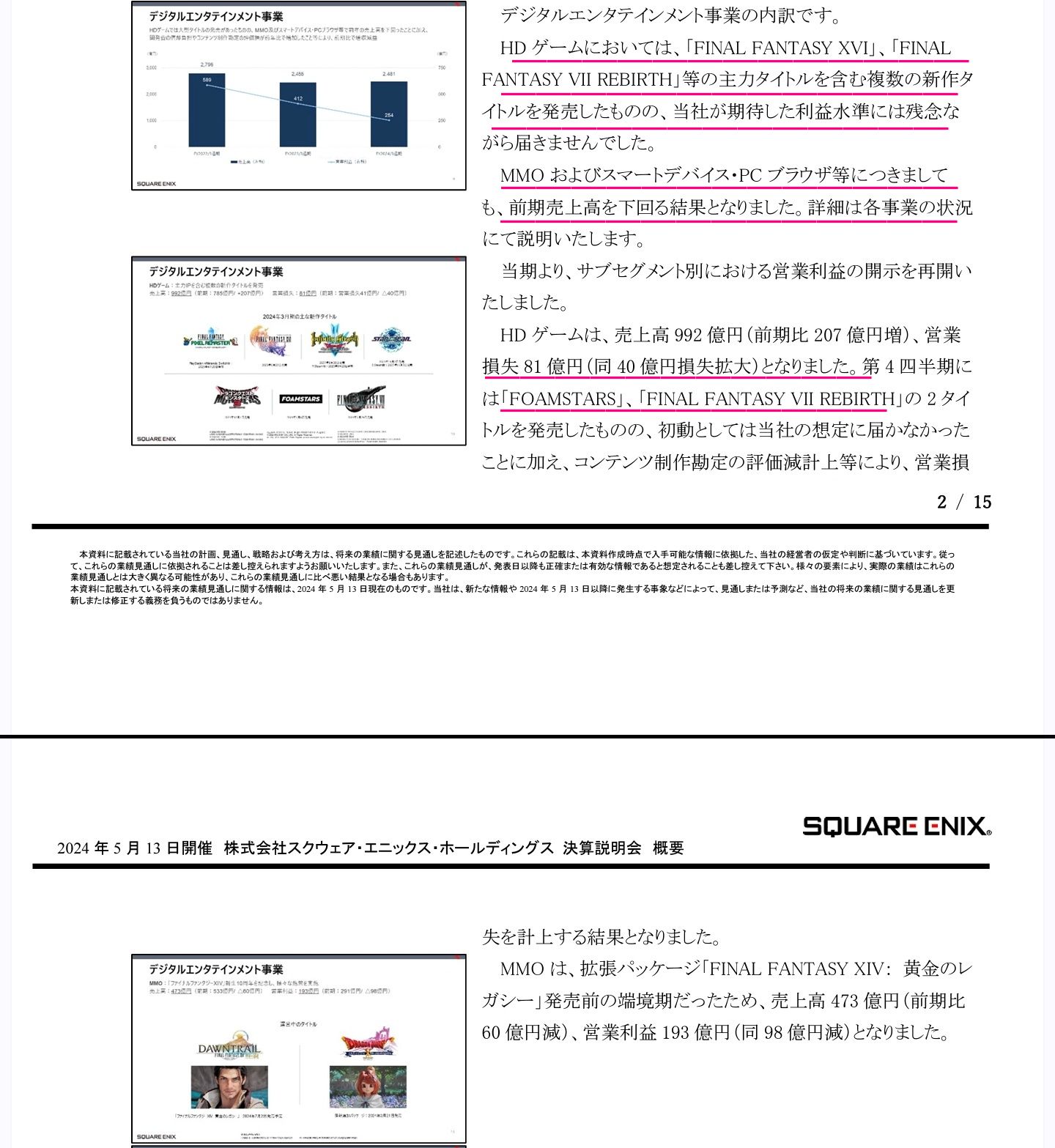 これをも見るとFF16とFF7リバース等の主力タイトルが売れなかったと