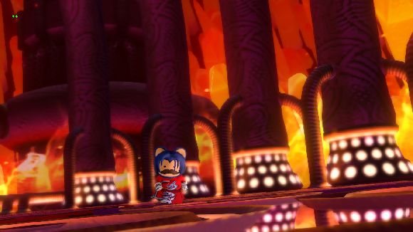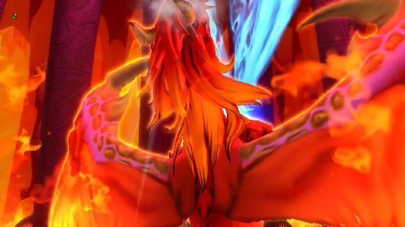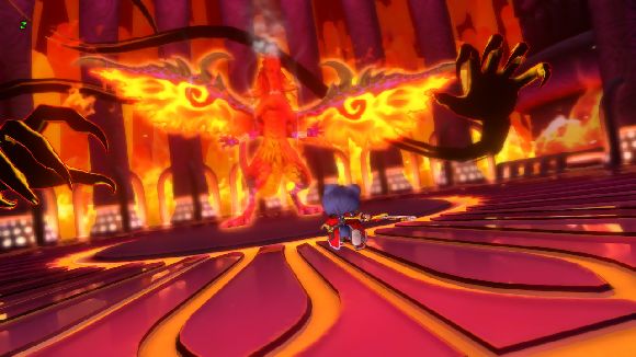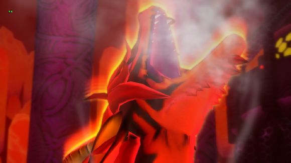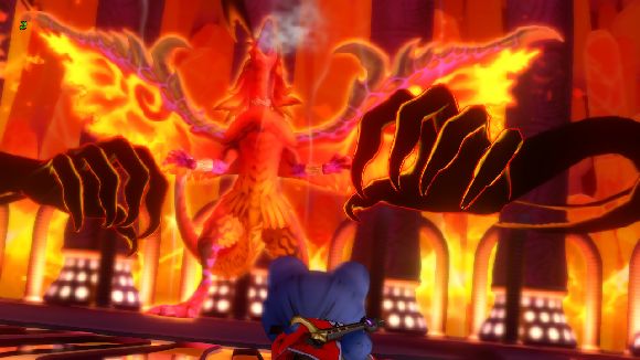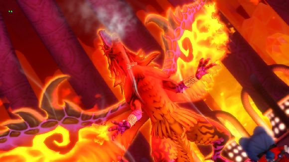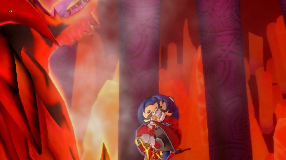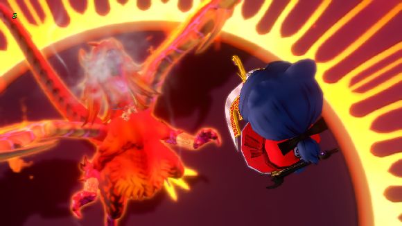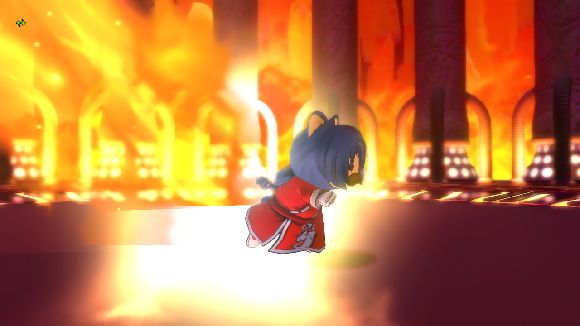 ユシュカの放つ炎を避けるたけまるさん